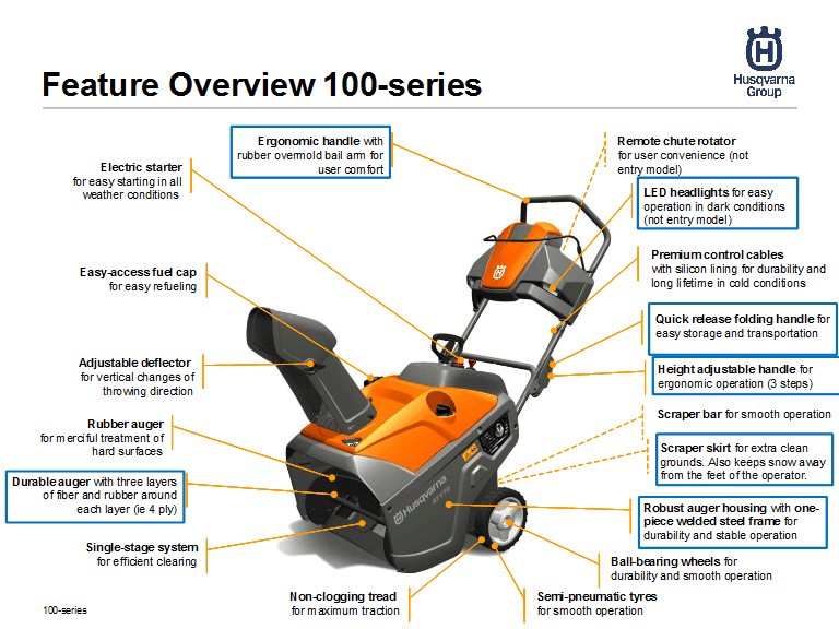 - Husqvarna brand engines instead of B&S Snow Series MAX.